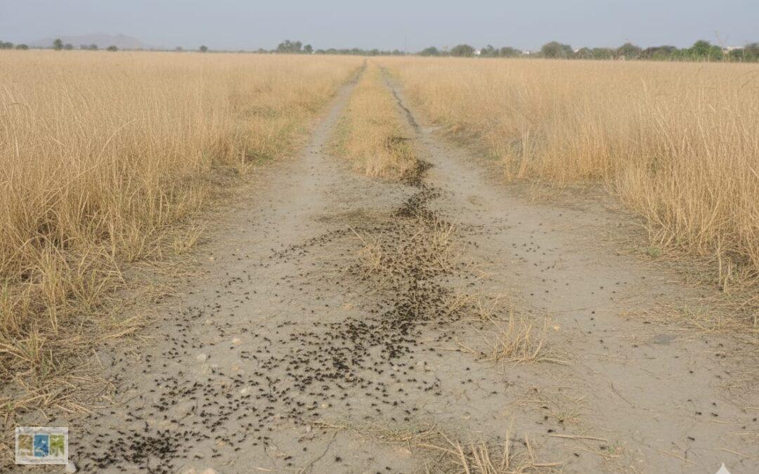 चित्र 3: सूखे मौसम में तालछापर अभयारण्य में एक अशाखित चींटी पथ पर गतिमान चींटियों का ट्राफिक