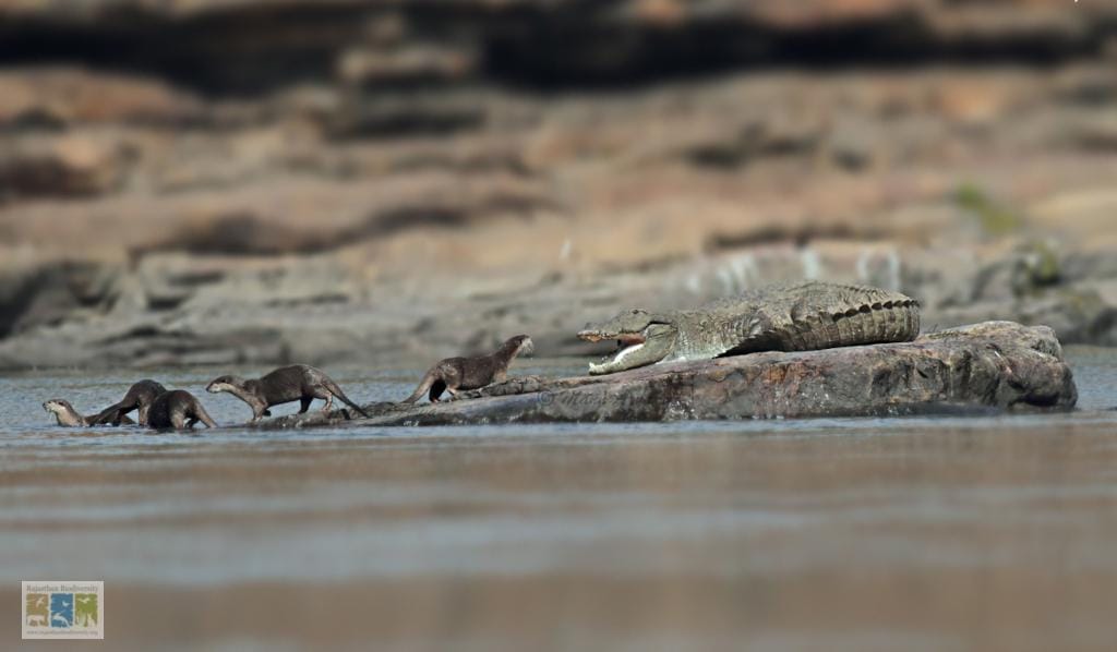 मछलियां खाने वाले ऊदबिलाव की तुलना में देखें तो मगरमच्छ निसंदेह एक खतरनाक शिकारी होता है परन्तु फिर भी मगरमच्छ संग इन ऊदबिलाव का व्यवहार बड़ा ही अजीब व दिलचस्प है। जिसे इस चित्र कथा में दर्शाया गया है तथा इस घटना को चम्बल नदी (कोटा) के किनारे पर शरद ऋतू की एक सुबह 11 बजे के आसपास दर्ज किया गया है।